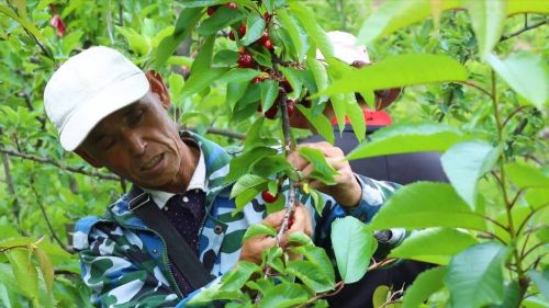 走进天水市秦州区秀金山现代农业综合开发示范园区一家合作社的果园,只见樱桃树长势喜人,一颗颗晶莹剔透的大樱桃缀满枝头,果农穿梭于樱桃树间,熟练地采摘着成熟的果实。