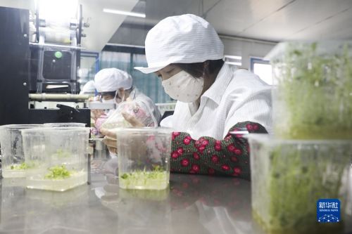 6月9日,在甘肃省定西市农业科学研究院马铃薯脱毒苗快繁中心,工作人员整理已制作完成的马铃薯苗培养基。新华社记者 马希平 摄