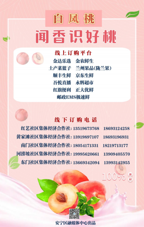 安宁白凤桃是当地特色农产品,线上精品桃销售将依托顺丰、EMS和京东等渠道;市区内各种保供平台将开展线上订单式采摘、点对点配送服务,力争白凤桃朝采夕至,新鲜直达。线下便民平价销售将依托直销点进行。