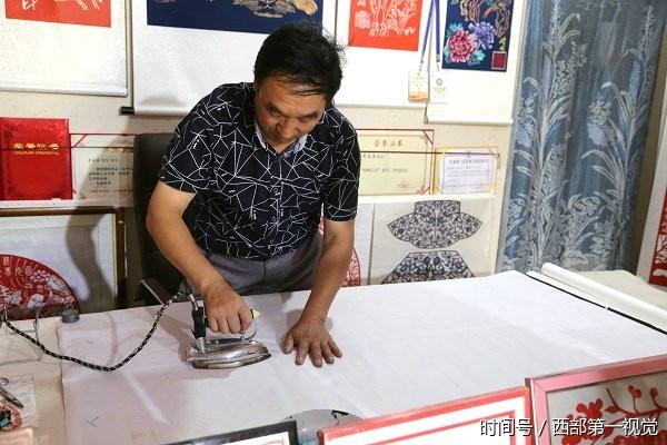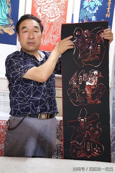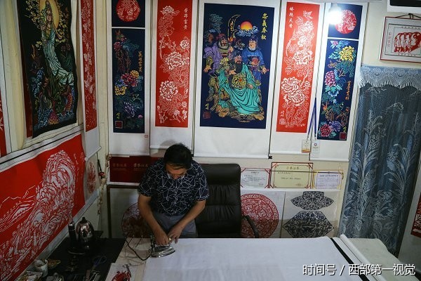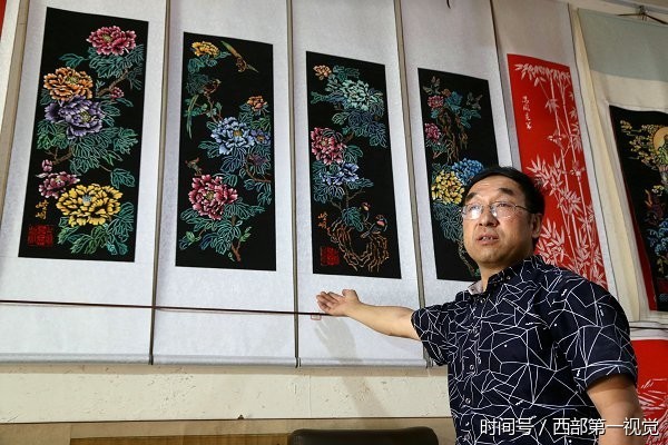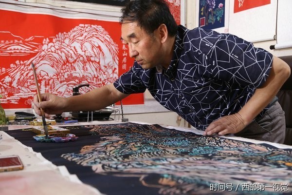 2017年8月12日,甘肃平凉市,一位名叫吴志泰的民间牛人独创“西北染色剪纸”,每幅4尺—6尺的作品售价为8000元至12000元不等。