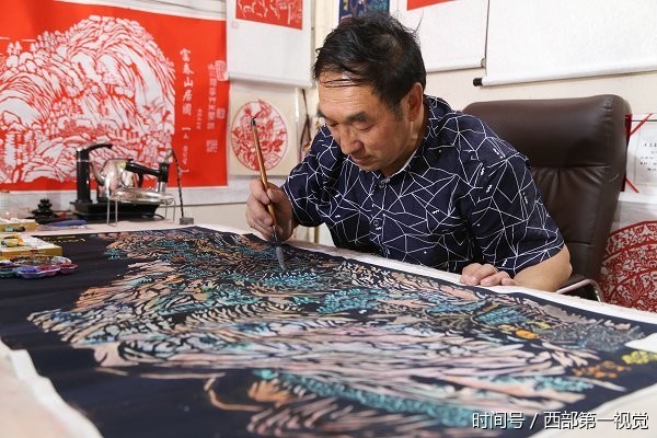 据悉,“西北染色剪纸”工艺流程繁琐,分为选材、熨烫、构思、裁剪、上色、装裱等,一幅4尺—6尺的作品最少也得一个月左右的时间才能完成。