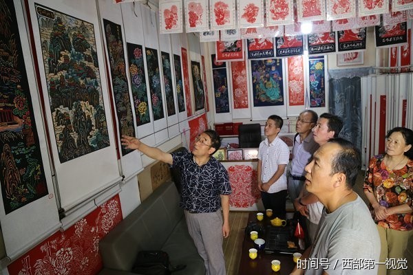 2017年8月12日,甘肃平凉市,“西北染色剪纸”吸引众人围观。