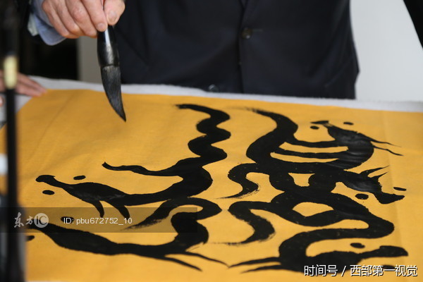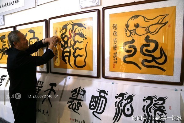 2017年8月27日,甘肃平凉市,记者拍摄到由当地77岁老人黄国光先生创作的“象形文”“龍篆书法”。