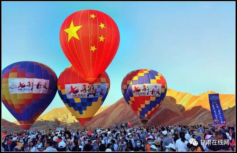 7月26日,第二届中国·张掖七彩丹霞(国际)热气球节在七彩丹霞景区隆重开幕。热气球节由张掖市文化广电和旅游局、张掖丹霞大景区管理委员会、临泽县人民政府、肃南县人民政府、张掖丹霞文化旅游股份有限公司联合主办;甘肃丝绸之路航空运动俱乐部有限公司、江西飞腾通用航空有限公司承办;甘肃省航空运动协会、张掖市体育局、临泽县、肃南县文体广电和旅游局协办,为期12天,是以打造七彩丹霞多元化IP主题,推动文化、体育、生态、旅游深度融合,加快推进七彩丹霞旅游业转型升级,助力张掖旅游复工复业为目的。