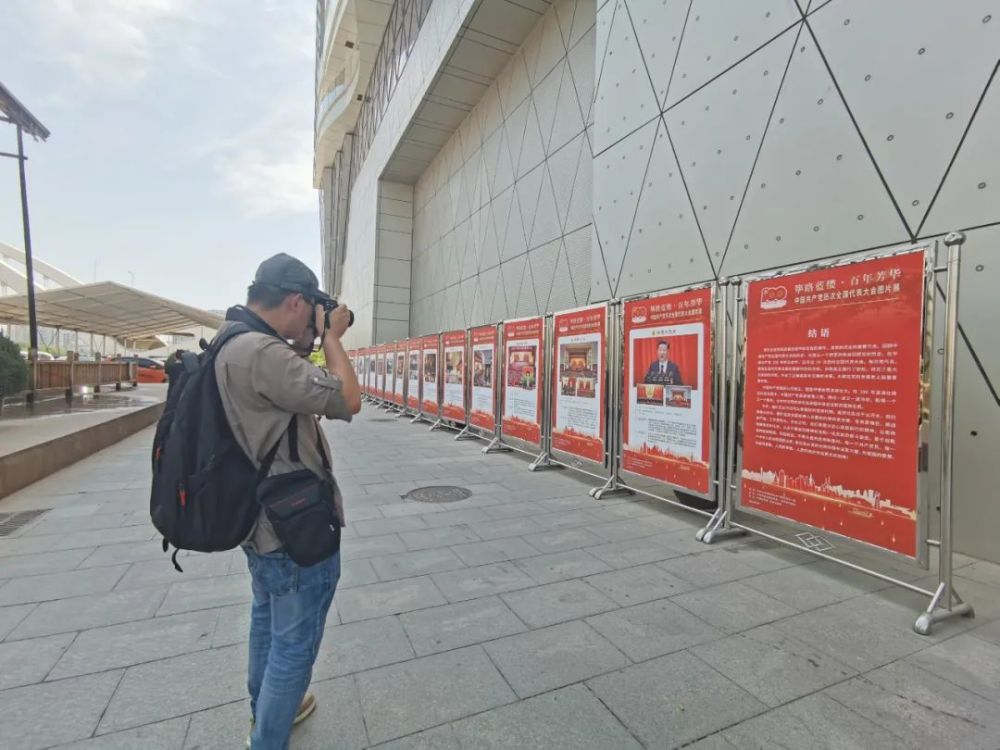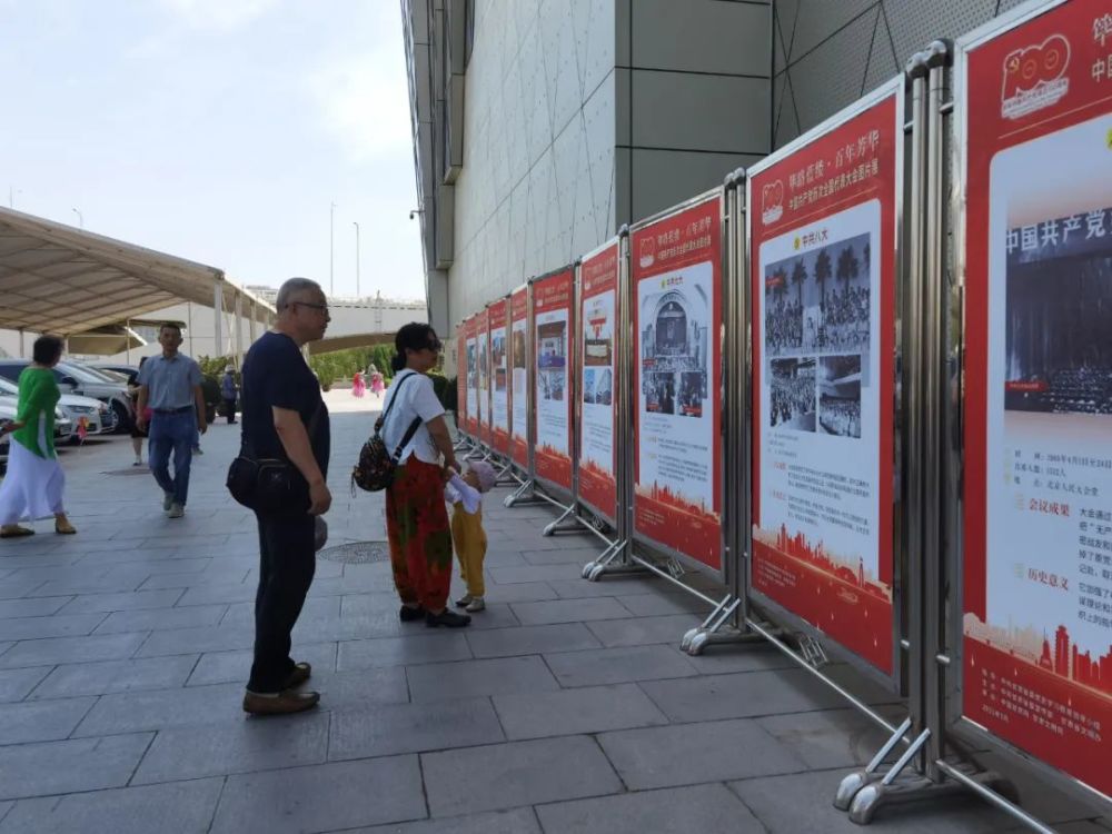 从中山桥沿黄河风情线一路往东至宁卧庄宾馆附近,近4.1公里街道两侧马路栏杆、墙面、路灯杆、人行天桥、公园绿地等处整整齐齐地悬挂起“庆祝中国共产党成立100周年”的宣传牌和宣传道旗,中山桥附近和兰州音乐厅前的“筚路蓝缕·百年芳华 中国共产党历次全国代表大会图片展”大型展板格外引人瞩目,丰富的党史知识吸引了许多市民游客参观。