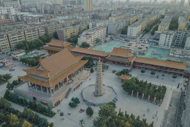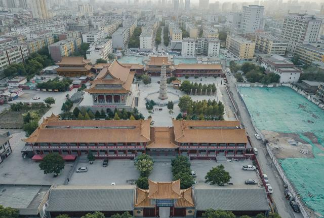 从航拍视角可以看到,寺庙旁边一墙之隔的很多建筑都已经拆掉了,唯有这座寺庙非常显眼。