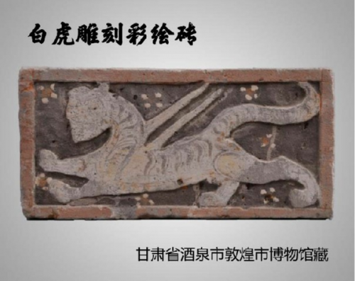白虎雕刻彩绘砖通体呈长方形