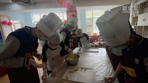 揉面、称重、搓圆、刷蛋液……在兰州凡尘安星特殊教育中心的一间教室里,孩子们正在老师的指导下学习制作小饼干。