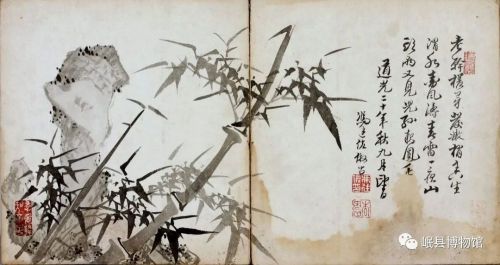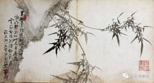 该组竹石作品潇洒、流畅、爽利,浓淡相宜,画面简洁,不染尘俗,寥寥数笔即将竹子的神韵凸显得淋漓尽致。