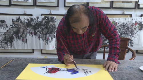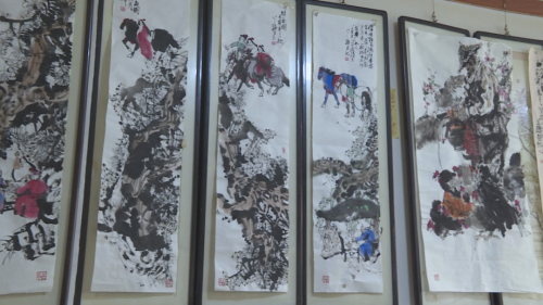 中国美术家协会会员,九三学社中央书画院副院长王首麟:一部分是以汉唐风韵为主,唐诗宋词等经典文学,把文学语言用绘画的手法表现出来,从我的理解和中国历代文化的综合在绘画语言上的表现,也是我一个创作,这次到西和这边做一下展示,跟大家做一下交流。