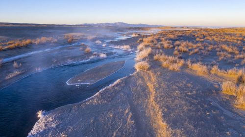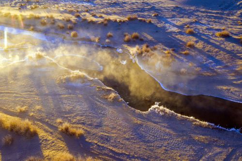 12月17日在哈尔腾高原上拍摄的晨光中的小哈尔腾河(无人机照片)。新华社发(高宏善摄)