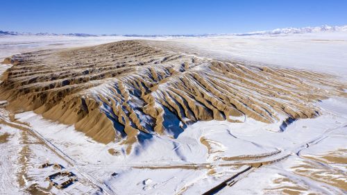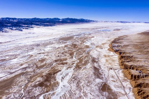 这是哈尔腾高原上冰封的大哈尔腾河(12月17日摄,无人机照片)。新华社发(高宏善摄)