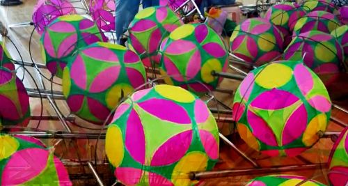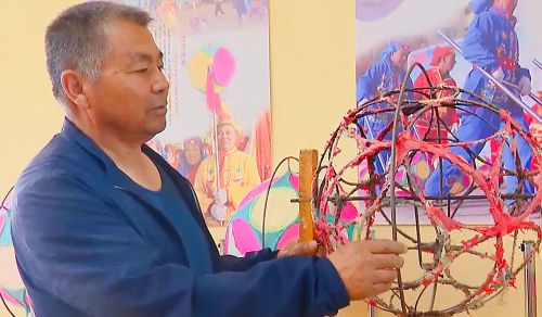 张安邦今年65岁,自其太祖辈起,代代都是技艺娴熟的滚灯人,到他手里已经是第三代了。明清时的滚灯,灯架、灯盘、转轴都是木制的,花灯是用竹条或柳条编织,解放前改成了罗圈骨架,而现在经过他改良的景泰滚灯,则是用高碳钢丝制作而成。