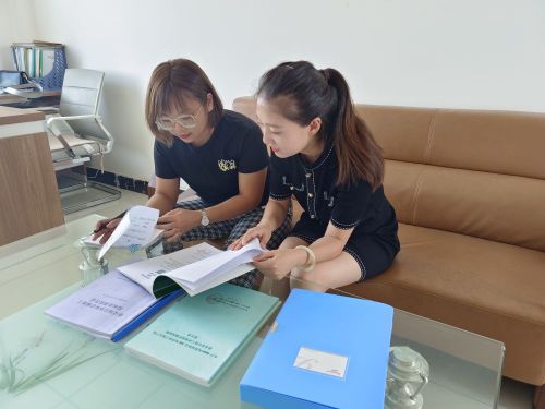 2022年8月,詹莉莉(右一)为驻在企业解答建设项目环境影响评价相关问题。(受访者供图)