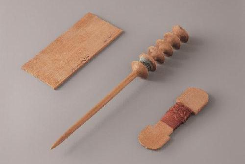 【纺线锭、缠线板·汉代·武威市磨嘴子汉墓出土】