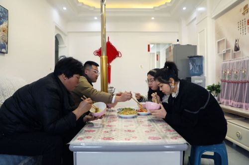 1月5日,郭强龙一家在陇南市武都区马街镇镇区的新家中吃饭。新华社记者 张智敏 摄