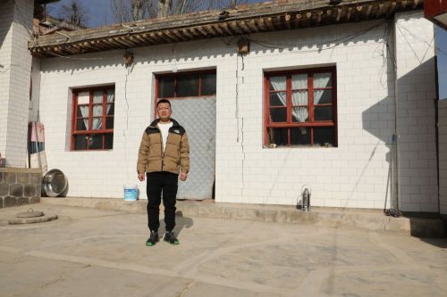 1月5日,记者在郭塄坎村拍下郭强龙和老屋的合影。新华社记者 张智敏 摄