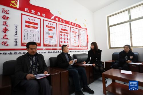 在陇南市武都区蒲池乡咀台上村,“民事直说委员会”成员入户解决村民诉求(2月9日摄)。新华社记者 范培珅 摄