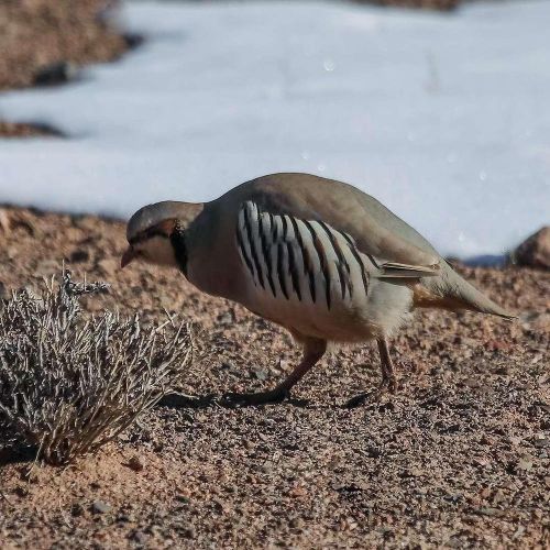 石鸡属于国家“三有”保护动物,是中型雉类,通体为灰色,和岩石颜色较相近,它静止不动时和岩石十分相似。喜栖息于低山丘陵地带的岩石坡、沙石坡及平原、草原、荒漠等地区,喜欢集群生活。有时白天成群窜到靠近山坡的农田地中觅食,遇惊后径直地朝山上迅速奔跑,紧急情况下也飞翔,飞翔能力强且迅速,但飞不多远即落入草丛或灌丛中。清晨和黄昏时,雄鸡常站在光裸的岩石上或高处引颈高声鸣叫,似“嘎嘎嘎……”或 “嘎拉,嘎拉’”声,故当地群众称之为“嘎嘎鸡”或“呱呱鸡”。