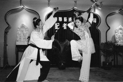 1980年1月16日,甘肃省歌舞团在香港演出。演员在记者招待会上表演。新华社发(周桂莲摄)