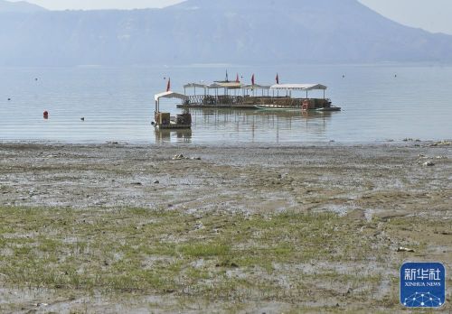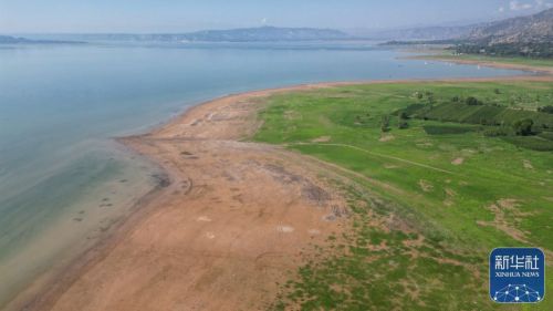 刘家峡水库水位下降,大片河滩裸露(7月24日摄,无人机照片)。