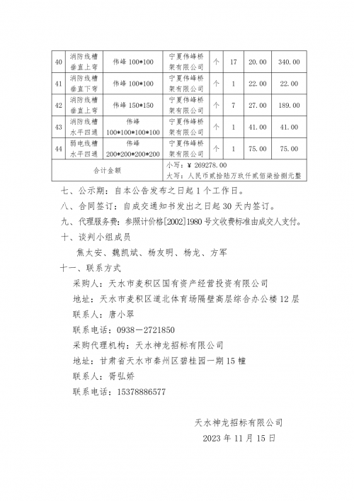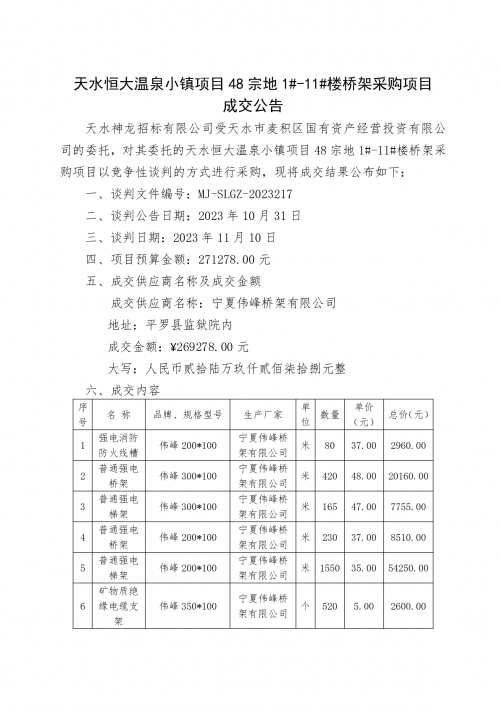 天水恒大温泉小镇项目48宗地1#-11#楼桥架采购项目成交公告