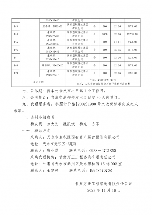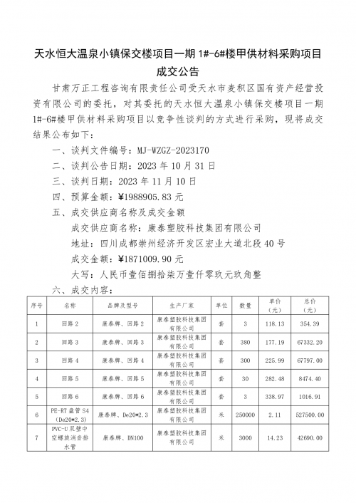 天水恒大温泉小镇保交楼项目一期1#-6#楼甲供材料采购项目成交公告