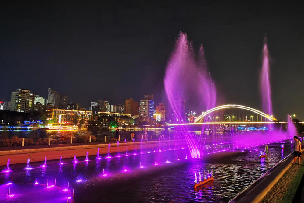 这是7月28日在兰州市城关区拍摄的黄河音乐喷泉。新华每日电讯记者 向清凯 摄