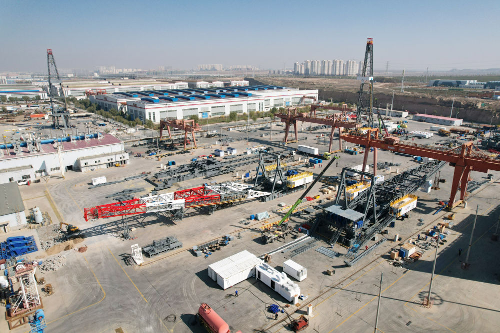 这是10月16日拍摄的兰州新区兰石集团高端装备产业园生产现场(无人机照片)。新华每日电讯记者 范培珅 摄