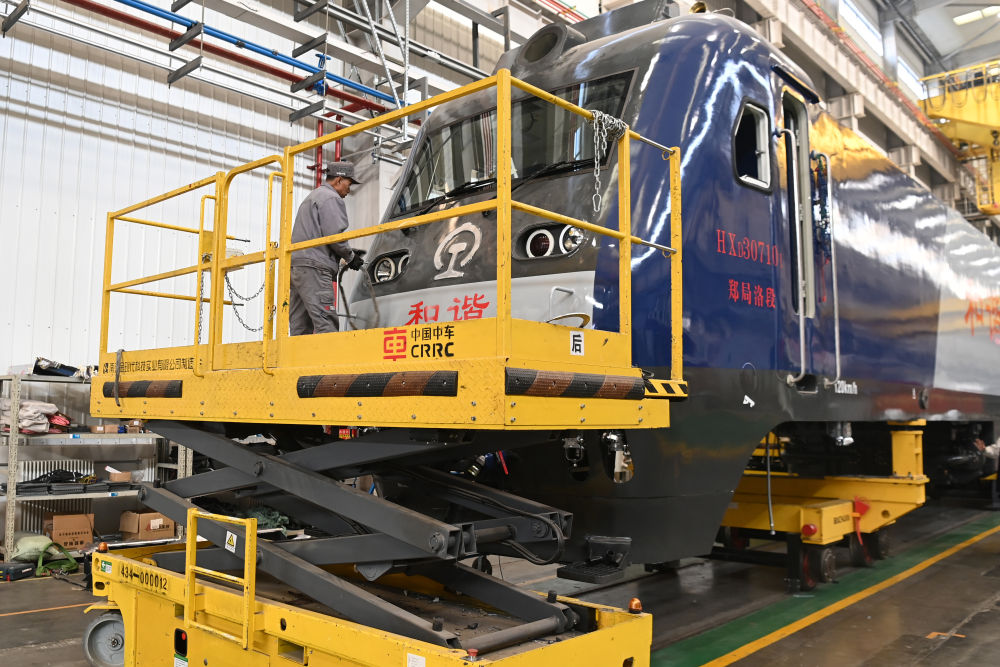 在位于兰州市安宁区的中车兰州机车有限公司,工作人员在机车检修线上作业(11月13日 摄)。新华每日电讯记者 范培珅 摄