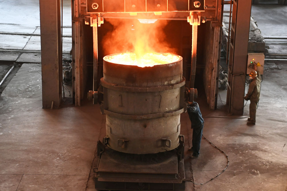 在兰州市永登县一家铁合金有限责任公司,工人在生产线上作业(10月29日 摄)。新华每日电讯记者 范培珅 摄