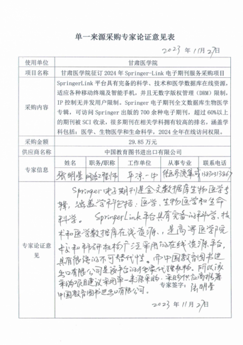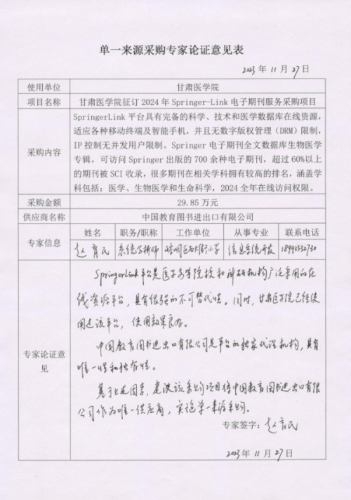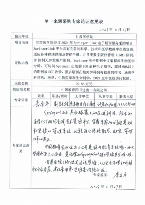 项目名称:甘肃医学院征订2024年Springer-Link电子期刊服务采购项目