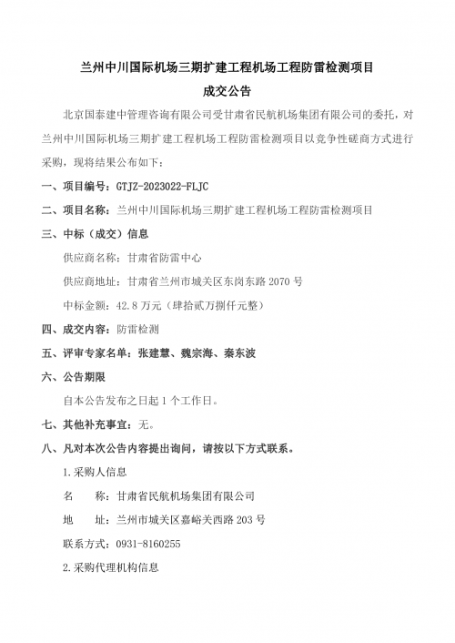 兰州中川国际机场三期扩建工程机场工程防雷检测项目