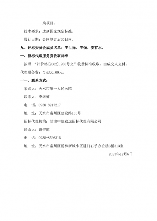 天水市第一人民医院流式细胞仪、尿干化学分析仪及生物芯片仪采购