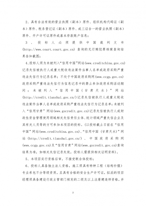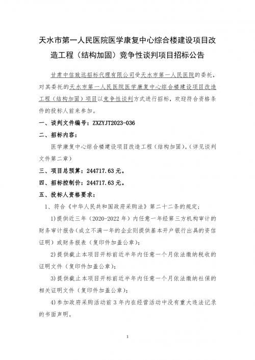 天水市第一人民医院医学康复中心综合楼建设项目改造工程(结构加固)竞争性谈判项目招标公告