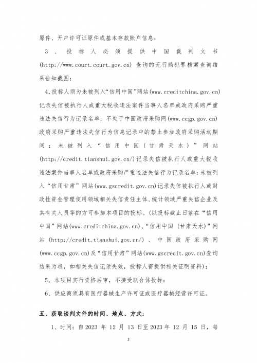 甘肃省南部区域医疗中心耳显微手术器械竞争性谈判采购项目招标公告