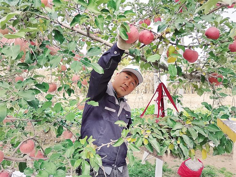 “为做大做强苹果产业,我们依托‘党建+合作社’,邀请省州县专家、乡土人才,从钢架搭设、苗木定植、水肥管理、修剪拉枝、病虫害防治等方面,为农户提供全程技术指导,全村现有果园2150亩,越来越多的村民依靠苹果产业致了富。”村党支部书记刘来恩说。