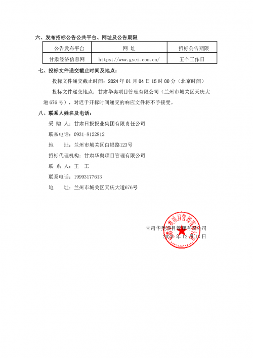 甘肃日报报业集团有限责任公司计算机设备集中采购项目公开招标公告