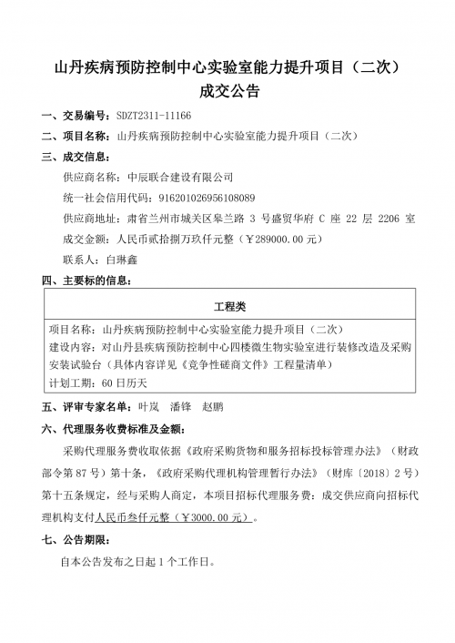 山丹疾病预防控制中心实验室能力提升项目(二次)成交公告