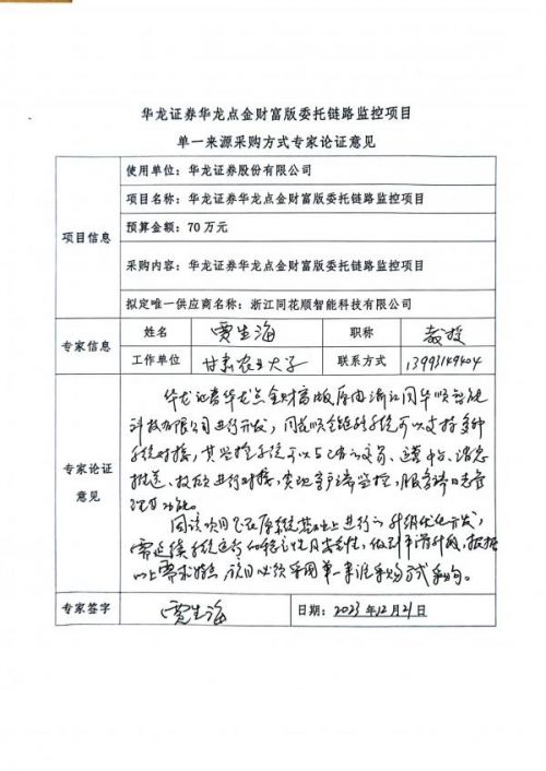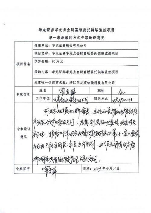 (十)任何供应商、单位或个人对该项目采用单一来源采购方式有异议的,可以在公示期内将书面意见反馈给华龙证券股份有限公司。