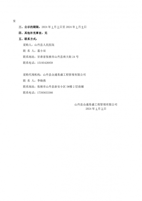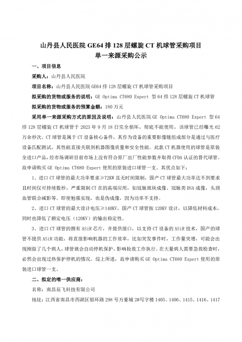 山丹县人民医院GE64排128层螺旋CT机球管采购项目 单一来源采购公示
