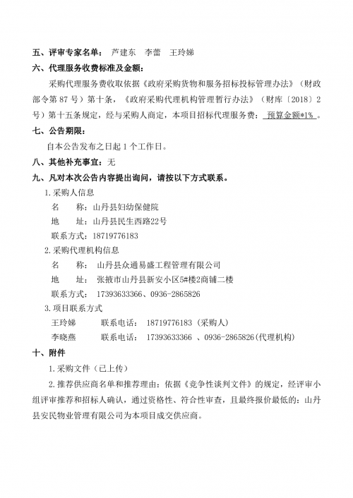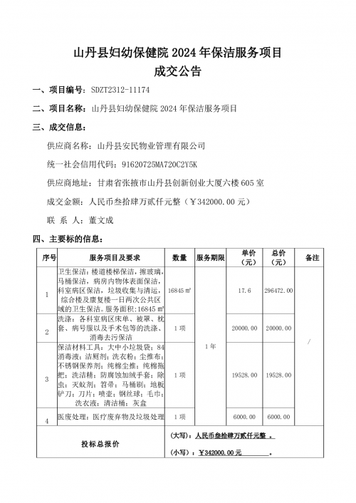 山丹县妇幼保健院2024年保洁服务项目成交公告