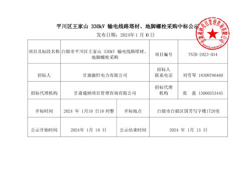白银市平川区王家山 330kV 输电线路塔材、 地脚螺栓采购