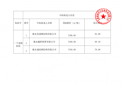 酒钢集团汇丰公司等单位12月方管等集中采购中标候选人公示