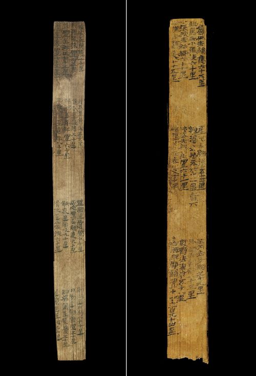拼版照片:汉简《居延里程简》(左图)和《悬泉里程简》。1974年出土于今内蒙古自治区额济纳旗破城子遗址的“居延里程简”,详细记载了从汉代长安出发至张掖郡20个驿置名称及间隔里程。1990年出土于敦煌悬泉置遗址的“悬泉里程简”,记载了河西走廊地区武威郡到敦煌郡12个驿置的详细信息。新华社发(甘肃简牍博物馆供图)