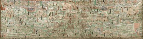 今天,两晋南北朝至隋唐的画作绝大多数已经失传。这种色彩明快的唐代青绿山水画,是莫高窟为后世留存的一段珍贵文化记忆。