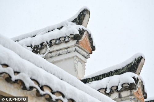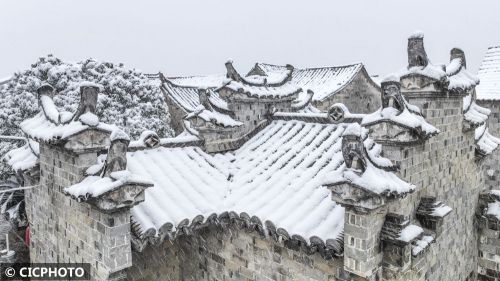 ↑2024年1月22日在湖南省娄底市双峰县荷叶镇曾国藩故居拍摄的雪景。CICPHOTO/李建新 摄