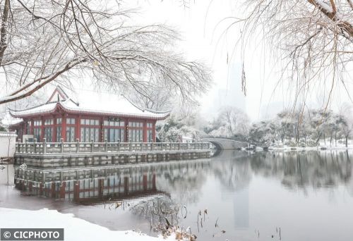 雪景映衬下,文物古建和中式建筑呈现如同国画的美景。