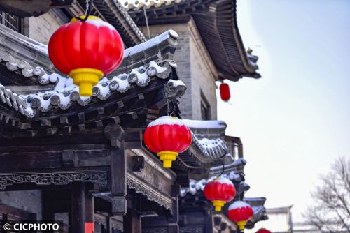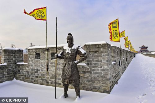 ↑2024年2月5日在山东省青州古城景区拍摄的雪景。CICPHOTO/王继林 摄