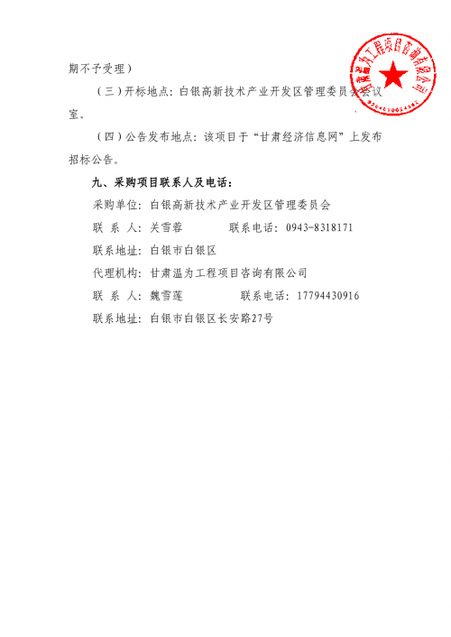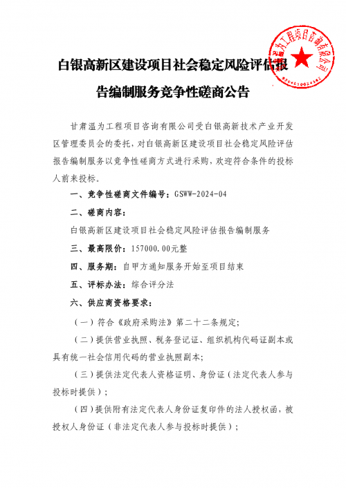 白银高新区建设项目社会稳定风险评估报告编制服务竞争性磋商公告